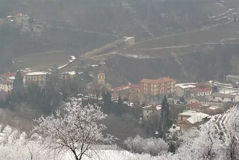 Rocchetta Belbo innevata dall'alto